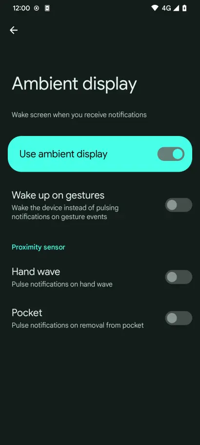 - Ambient display gestures (Settings->Display->Lockscreen->Ambient Display)
